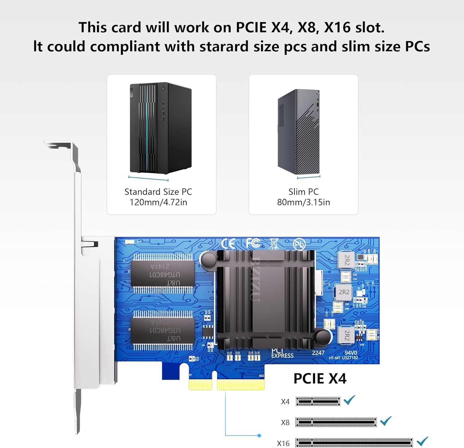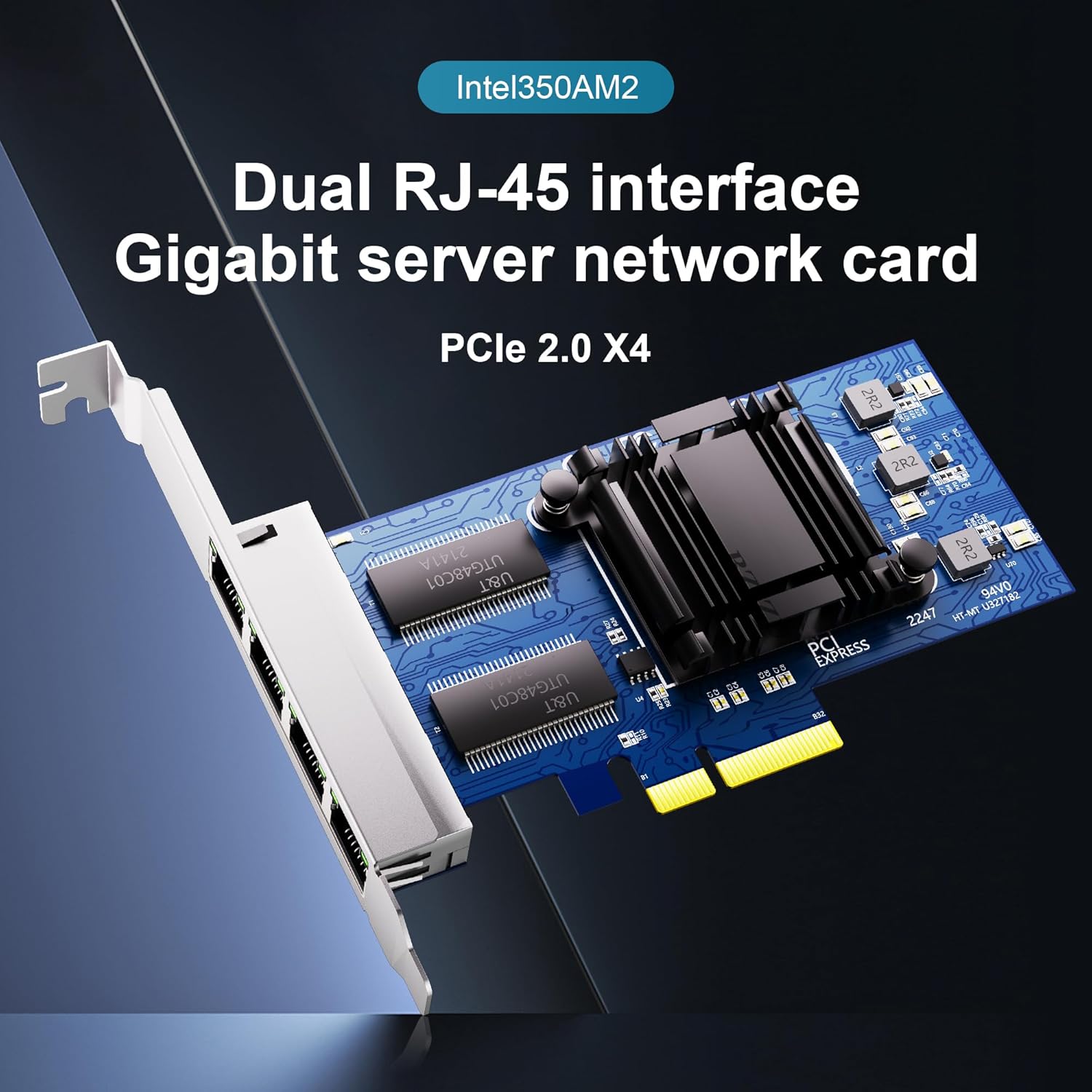 - Recibes: 1 tarjeta LAN de cuatro puertos Intel I350-T2 de BZIZU x1 soporte delgado, con una devolución gratuita de 30 días, garantía de 3 años y soporte técnico de por vida.